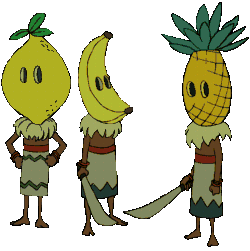 The Cannibals, otherwise known as the Monkey Island Cannibals, were recurring characters throughout the series. They were usually seen as three individuals, each wearing various tribal and fruity headgear. They originated from Monkey Island, and later moved to Blood Island after construction of LeChuck's Carnival of the Damned began. They described themselves as the only civilized people on the island, vicious man-eaters, and enjoyed preying upon nosy tourists that wander into their village. They believed in offering gifts and sacrifices to appease whichever deity they believed at the moment, such as the Giant Monkey Head and later Sherman