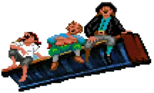 When Threepwood questioned them further, they claimed that it was not a performance and in truth they were afraid to come down due to 'orcaphobia', the opposite of acrophobia. Frank then would pay Guybrush a piece of eight each time he polishes his pegleg.