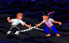 On Mêlée Island, a number of pirates roam the forest paths ready to fight anyone who gets in their way.