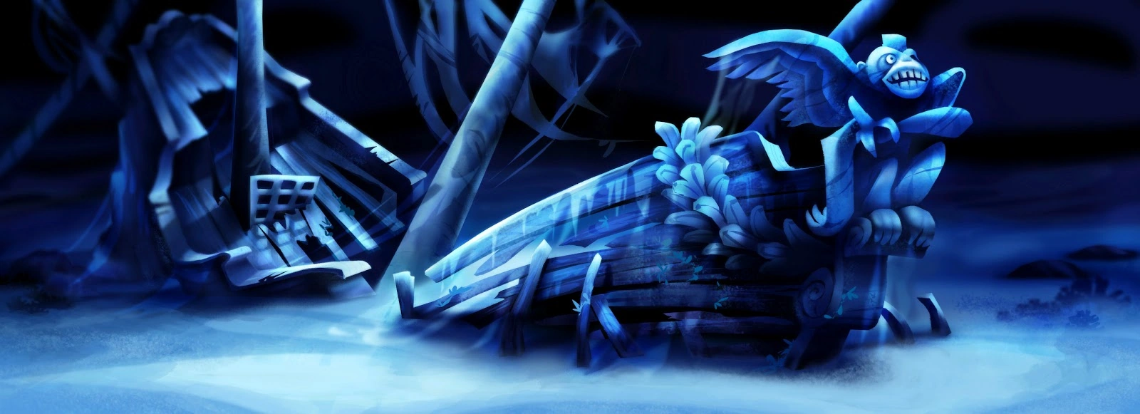 A tribute to Monkey Island is made in The Sea of Thieves with the appearance of a ship derelict, supposed to be the Mad Monkey, rechristened as the Headless Monkey. The theme of Monkey Island is heard while the player walks around it; inside one can find a map of the Tri-Island Area. The layout and graphics have a cartoony falir.