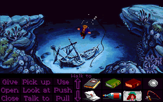 Guybrush dive into ocean depths searching Monkey Figurehead.